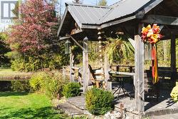 Just north of Hanover, this beautiful 2+ acre property offers privacy, space, and natural beauty. It features a raised bungalow, detached shop/garage, gazebo, pond, garden shed, gardens, all surrounded by a beautiful variety of trees. The 1993 raised bungalow features 2+2 bedrooms and 2 bathrooms. The main floor includes an open kitchen/dining area with patio doors to the deck, a living room with a large picture window overlooking the south covered porch, laundry room with outside access, 2 bedrooms, full 4 piece guest bathroom and primary bedroom with 3-piece ensuite and walk-in closet. The lower level offers a spacious family room with bar and sink, cozy propane fireplace, 2 additional bedrooms, and a utility room with walkout. Enjoy the outdoors from the large north-side deck with manual awning and propane BBQ hookup, or from the stunning post & beam gazebo (12' x 16') with 10' x 10' extension overlooking the pond and tree-lined yard. The detached steel clad heated/insulated garage (24' x 40') with propane heat and radiant heater provides an excellent workspace, complete with two 9'6 x 8' doors and a 12' x 40' lean-to (with access doors on each end). A garden shed (10 'x 16')with verandah (6' x 16'), extensive gardens, decorative brick fire pit area and greenhouse (negotiable) add to the property's appeal. With its mix of open space, trails through mature trees, and peaceful views, this property offers the perfect balance of country living just minutes from Hanover's amenities. (id:7525)