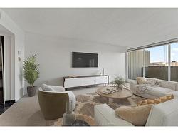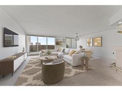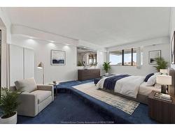 Royal Windsor Terrace, this distinguished two-storey loft condominium offers refined urban living in the heart of downtown Windsor. Encompassing approximately 1,230 square feet, the residence features two bedrooms and two bathrooms, thoughtfully designed to balance style, comfort, and functionality. The south-facing orientation delivers expansive skyline and neighbourhood views, filling the space with natural light throughout the day. The open-concept main level is anchored by a contemporary kitchen complete with modern cabinetry and a four-person breakfast bar—ideal for both casual dining and entertaining. Generous closet space, a same-floor storage locker, and same floor access to a washer and dryer further enhance everyday convenience. Step onto the private balcony, perfectly suited for barbecuing or showcasing a personal garden retreat. The offering includes all utilities except electricity (historically averaging approximately $75 per month), all appliances, and assigned heated underground parking, complete with a dedicated car wash area. Residents enjoy access to an exceptional suite of resort-style amenities, including a heated indoor pool, a fully equipped fitness centre, whirlpool tub, billiards room, and ping-pong lounge—creating a lifestyle that seamlessly blends comfort, recreation, and sophistication. This residence presents an outstanding opportunity for professionals or executive buyers seeking a premium downtown condominium with space, views, and comprehensive amenities.