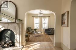 Architectural Integrity Meets Modern Refinement. Discover the perfect blend of history and quality design at 23 Centre Street. This century home, situated on one of Elmira's most storied, heritage-lined streets, has been reimagined for the buyer seeking both soul and sophistication. Meticulously restored, the interior respects its original character while introducing a curated, organic luxury feel. The main floor features nine-foot ceilings, rising to ten-foot heights on the upper level, creating an expansive, airy atmosphere throughout. A hand-selected Farrow & Ball colour palette serves as the backdrop for iconic Morris & Co. patterns, honouring the home's heritage while maintaining a contemporary edge. Anchored by a collection of designer and antique light fixtures that cast a warm glow over wide-plank engineered white oak flooring and heated marble and limestone tiles. Oversized windows flood every room with natural light, highlighting the crisp, clean lines of the professional restoration. Beyond the aesthetics, the home is equipped for the future with a 200 AMP electrical panel, dedicated EV charging, and fully updated bathrooms that blend timeless materials with modern fixtures. The property is a study in professional landscaping, designed to offer a private sanctuary. Unwind on the upper balcony, around the fire pit or lounge on the stamped concrete patio. The gardens provide year-round visual interest, providing a lush, serene space that mirrors the elegance of the interior. Situated in a welcoming neighbourhood excited for those who choose to call it home, just steps from the downtown shops and a short drive to the St. Jacobs Farmers' Market, Canada's largest year-round market. Enjoy the Woolwich Memorial Centre, featuring state-of-the-art fitness facilities and pools, the extensive G to G Trail system for cycling and hiking or immerse yourself in the local history, from the iconic West Montrose Covered Bridge to the seasonal Elmira Maple Syrup Festival (id:7525)