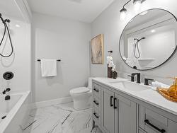 Step inside this splendid five-bedroom residence, where multi-generational living is elevated to a whole new level of comfort and convenience. Situated in a prime location, this home is nestled in one of Charlottetown's newest neighbourhoods, a stone's throw from top-rated schools and all the essential amenities. This house exudes elegance and modernity, boasting an open-concept kitchen that is the heart of the home. Vaulted ceilings rise above, while the large island beckons family and friends to gather. Solid surface countertops and abundant storage make this space both stylish and practical. The adjacent living room, warmed by a feature wall fireplace , invites relaxation and togetherness. The master suite is a sanctuary of serenity, complete with a glass-enclosed custom shower and a walk-in closet that will delight even the most fashion-conscious. The main floor also offers the convenience of a laundry room, ensuring household tasks are effortlessly managed. Additional bedrooms are generously sized, offering ample space for family, guests, or a home office. The property includes a self-contained apartment/in-law suite, which presents a golden opportunity for rental income or a private space for extended family, with its own bedroom, bathroom, laundry, and separate lower patio entrance. Energy efficiency is at the forefront, with two heat pumps providing year-round climate control, while the attached double car heated garage provides a warm welcome home, no matter the weather. This residence truly caters to the needs of families of all sizes, promising a blend of luxury, comfort, and versatility. Welcome to your new family haven. Note these photos are from a previous build by this builder, estimated completion date is end of August.
