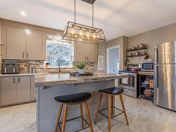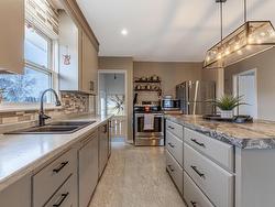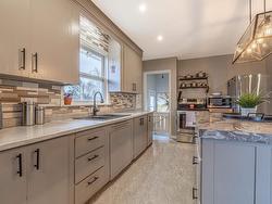 Charming 3 bedroom with 2,266 sq.ft. living area bungalow in Cornwall, zoned R2 dual family and designed for potential dual living. Superb location, fully renovated home with separate entrances for main floor and walkout basement access. Large 0.39 acre lot featuring semi-circular drive with two street entrances, large decks, and partially fenced yard for kids or pets. Modern main level living, features a bright and functional layout with living areas filled with natural light. The updated kitchen has a custom island with vinyl plank flooring. Main floor bath with spacious bright primary bedroom with access to private deck. The large walkout basement is fully finished, which has two large family rooms, perfect for extended family, gym, office, with endless versatility. There is also a laundry, half bath, storage area and a propane furnace room with even more storage space. Recent upgrades include: in 2025 new steel roof and roof insulation, side deck 11’ x 20’ and painted inside and out; in 2022 new propane hot water furnace, and recently renovated kitchen with custom island, new bathroom vanities and fixtures and with the exception of bedrooms there is new flooring throughout the home. House has durable aluminum siding and windows replaced. Outdoor living with great neighbours, a spacious yard with fire pit and sitting areas and includes an 8’ x 12’ shed that has a gravel parking pad alongside it. The community hiking trails are next door alongside Hyde Pond. Ideally located within walking distance to public transit, APM and Terry Fox Centres, Town Hall, library, schools, shopping, and medical services. The home combines convenience with modern cozy living, suitable for first time home buyer, a growing family, or potential rental income.