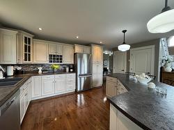 This is truly a beautiful, immaculate, quality-built custom home which boasts over 3500 sq ft of finished living space. Nestled on a water view, treed, mature 1.1 acre lot in a private sub-division. Minutes to the picturesque surroundings of PEI's National Park, miles of sandy beaches, golfing, deep sea fishing, restaurants, walking and ATV trails as well as local shopping and close proximity to Charlottetown. Here you have deeded access to the water where you can sit, water sport, dig clams or enjoy a beach fire while taking in the beautiful scenery & Sunsets. The main level of the home begins with a spacious open foyer that flows into the large combined great room and dining area featuring 24 ft cathedral ceiling, large window seats, floor-to-ceiling windows that maximize natural light as well as your water view of Rustico Bay, Robinson's Island and the Ocean! This area is enhanced by the extra ambiance created from the large exquisite custom built mantled fireplace. You will love the well appointed kitchen, large Island, lots of counter space, cabinets, walk in pantry, stainless steel appliances and complimenting backslash. This well designed area is ideal for entertaining. Also on the main level is a very bright large bedroom with a walk-in closet, a half bath and large back foyer giving access to the double attached garage. The eye catching grand stairway leads to the upper level featuring a lovely sitting area loft over looking the main area & views! French doors lead to a spacious peaceful retreat primary bedroom, 11' x 6' walk-in closet, large ensuite with jacuzzi tub and separate shower. The lower level with egress windows consists of bright rec room, propane stove, a 3rd bedroom with walk-in closet, large laundry/full bathroom, a finished large office/games room that can easily convert to a 4th bedroom, a multi-purpose room, a mechanical room & a cold storage room. The best of four season tranquil living, this fantastic home and property is a must see!