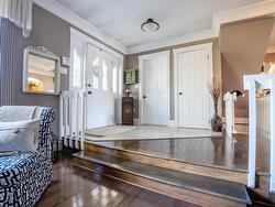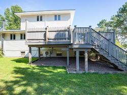 Excellent curb appeal, located next to a park, and walking distance to two schools, this four bedroom home in Summerside is one you do not want to miss! The home shows beautifully and is in immaculate condition. The main entrance welcomes you with a covered porch and high end composite decking, a perfect seating area for morning coffee or evening drinks. The home’s entry is spacious and accesses the single car garage and a large closet. The main floor features a beautiful step down living room with high ceilings, a step down primary bedroom also featuring high ceilings, a second and third bedroom, a main floor full bathroom and laundry room, and the kitchen and dining area. The dining room has ample natural lighting and views of the park and the backyard. The 24x14 back deck leading off the dining area is sure to impress, featuring high quality composite decking and excellent craftsmanship! This outdoor living space is a true oasis, and has a private hot tub area. The home's lower level welcomes you with a spacious and cozy gathering room, a full bathroom, a fourth bedroom, a large storage room with lots of shelving and a furnace room. The home's upper level is accessible via an exterior side door, and from inside the garage. This large and impressive space is currently set up as a hair salon, and has a half bathroom, and a washer and dryer room. The home’s floor plan was well thought out, providing an easy renovation option to open the hallway, on the home’s main floor (next to the dining area) to the landing that leads upstairs, if needed. The upstairs area is large enough to convert into a potential suite, or become a large dream primary bedroom, or possibly continue as a beautiful hair salon home business or other home business! Recent upgrades to the home include three new heat pumps, hot water heater, 200-amp service, Generlink, and new central vac.