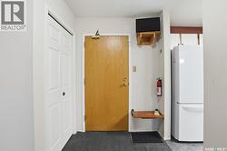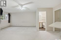 Elevator access, Park-view top-floor condo in Parkside Place! This bright 1,376 sq ft 2-bed, 2-bath unit offers an open layout with morning sun and direct park views from the living room. Features include a large in-suite laundry room, wall A/C, spacious balcony with storage, , and one electrified parking stall. Prime location near Confederation Mall, parks, schools, and Circle Drive. Vacant and move-in ready! (id:7525)