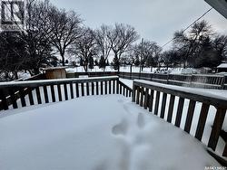 Immediate Possession Available! Welcome to 159 Peaker Avenue in Yorkton SK. Driving up to the property you will find off street parking for up to 3 vehicles. Entering the home from the west entry door will bring you to a porch area. A few steps over will take you into the large living room with west facing window. The kitchen area features included fridge, stove, microwave, and dishwasher. The east facing windows allows a great view of the back yard and green space known as Roslyn Hill. The kitchen also has direct entry to the east facing deck (12x16). The flooring in the kitchen and living room were updated in 2021 with Vinyl Plank Flooring. There are two good sized bedrooms on the main floor with updated flooring (Vinyl Plank Flooring 2017). The 4 piece bathroom completes the main floor living space. The stairs to the basement are carpet and lead to an extra large rec room. Part of the rec room area can be sectioned off for a bedroom or office area. The rec room area also has new Vinyl Plank Flooring (2018). The rest of the basement is used for laundry, utility, and storage. The laundry area features included washer and dryer. The utility area features HE Furnace with Central Air (2017), Updated 100 AMP Electrical Panel, Water Heater, Water Softener (2022), and RO System. The extra large back yard is fully fenced with entry points to the back alley, and front driveway. Enjoy outdoor living on the 12x16 deck with direct entry to the kitchen. The shingles were done in 2023. The street is generally quieter with friendly neighbours. Enjoy year round activities at the famous Roslyn Hill, known for a popular toboggan hang out in the winter and a beautiful green space in the warmer months. This property is not for rent or rent to own. (id:7525)
